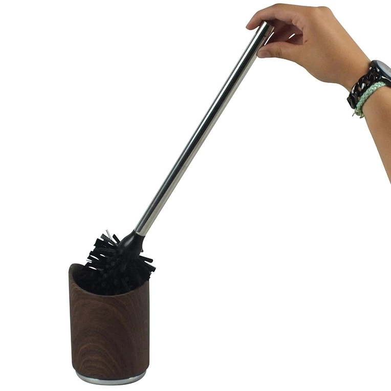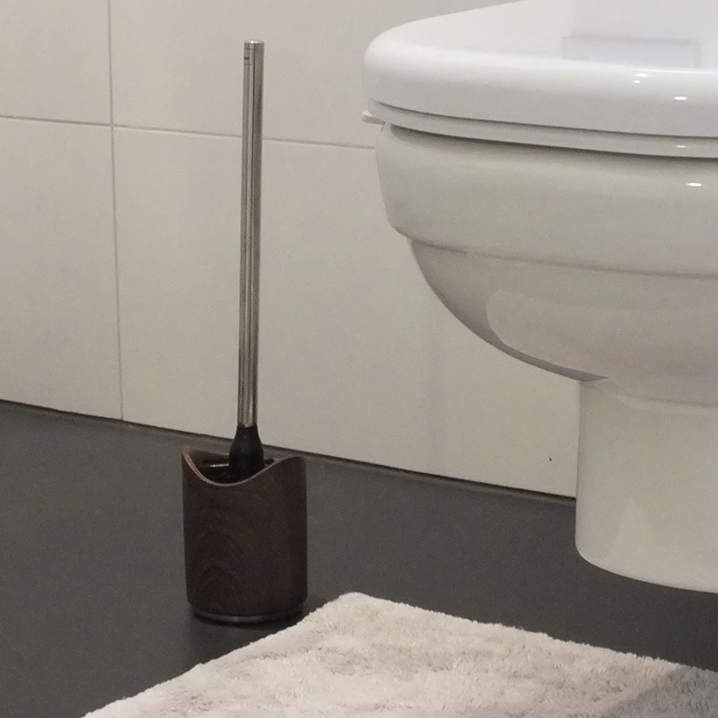 Die stabile WC-Garnitur mit ihrem verchromten Zinkdruckgussboden und der dunklen Wallnuss-Holzstruktur passt hervorragend zu unterschiedlichsten Stilen von Badezimmereinrichtungen, vorwiegend zu holzigen oder dunklen Tönen. Der hochwertige Bürstengriff besteht aus Edelstahl und steht ordentlich in dem dafür vorgesehenen Behälter. Passende Ersatzbürstenköpfe gibt es selbstverständlich ebenfalls bei Kela. Sie haben die Artikelnummer 20140 oder 20141.