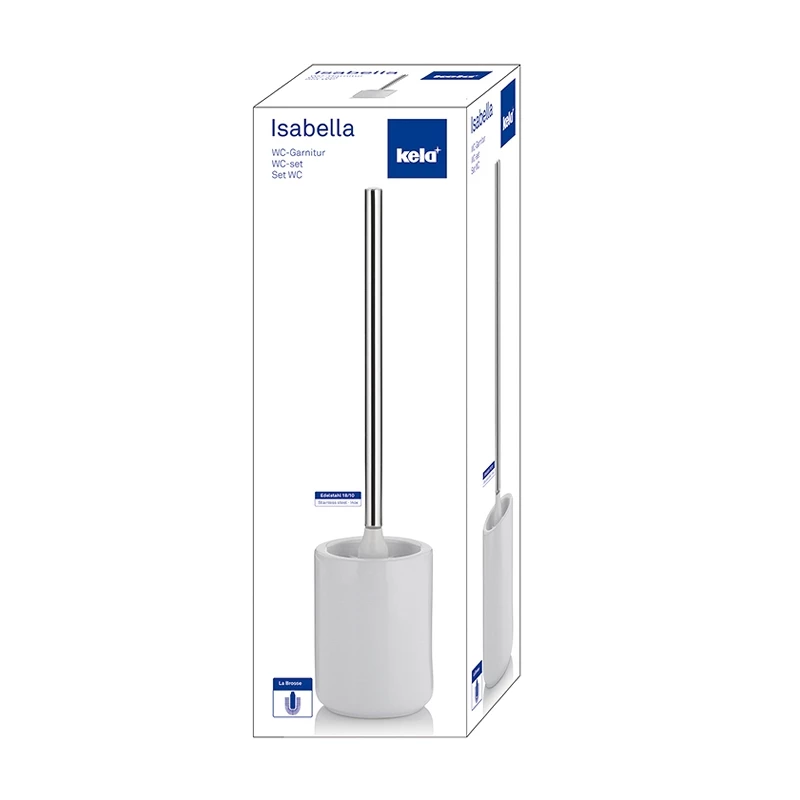 Moderne WC-Garnitur modernen Farben. Die WC-Garnitur Isabella sind innen weiß und außen entweder in einem Petrolton, in Cashmerebraun, Weiß oder Indigoblau. Bei einer Höhe von 46 cm beanspruchen sie nicht allzu viel Platz. Der Bürstengriff ist aus hochwertigem Edelstahl und ebenso wie die La Brosse-Bürste selbst austausch- und nachbestellbar. In dieser schönen Badserie finden Sie zudem passende Accessoires (Seifenspender, Becher, Seifenschale), sodass Sie Ihr Bad mit einem durchgängigen Stil ausstatten können.