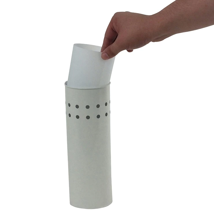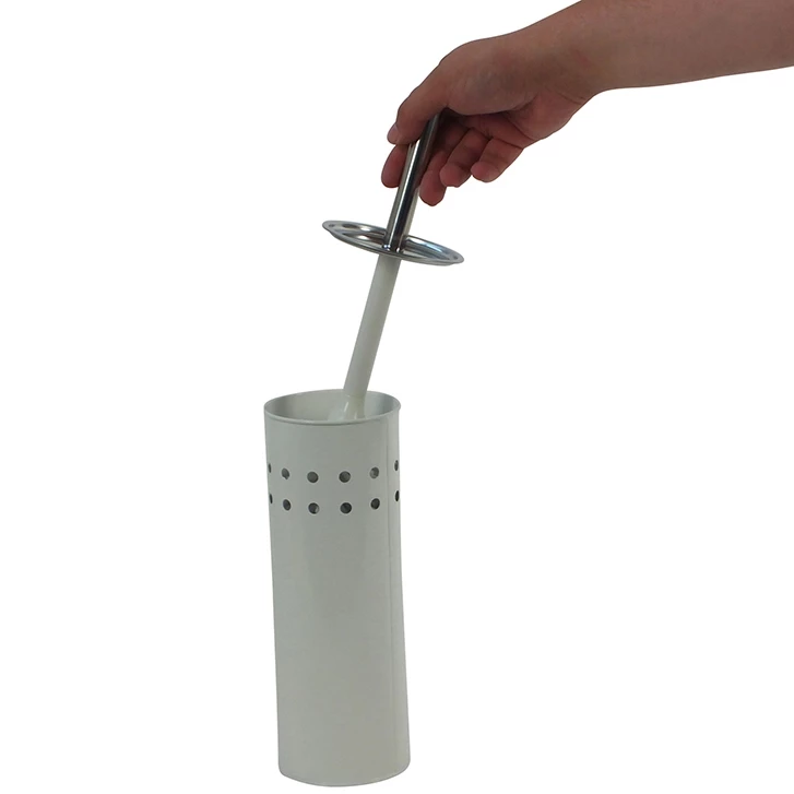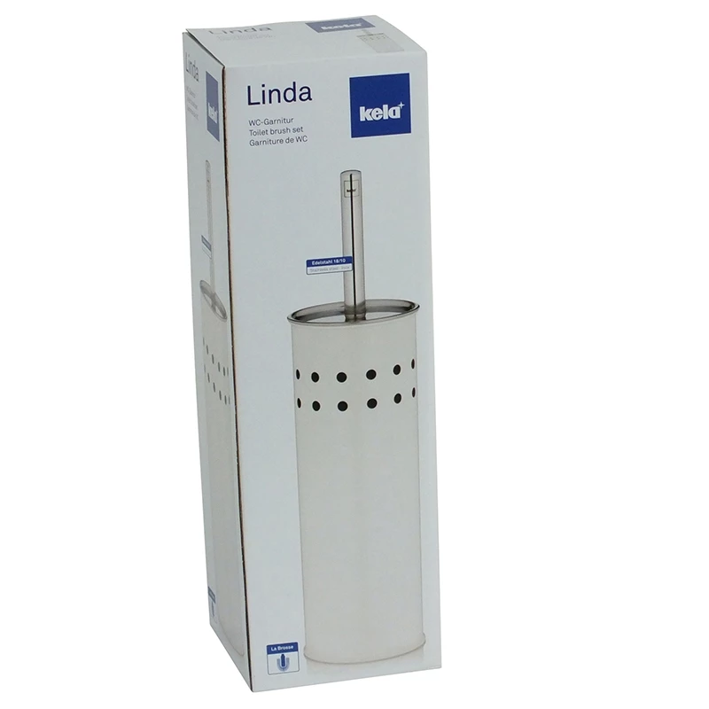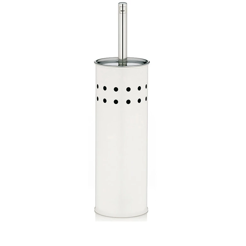Das zweireihige Lochmuster gibt der WC-Garnitur den letzten Pfiff. Den runden, geschlossenen WC-Behälter aus farbig beschichtetem Metall gibt es wahlweise in verschiedenen Farben. Der innenliegende Kunststoffbehälter fängt das Tropfwasser der WC-Bürste auf und lässt sich leicht zum Entleeren und Reinigen herausnehmen. Der Bürstengriff sowie der Deckel der Garnitur sind verchromt. Der Bürstenkopf ist vom Griff abschraubbar und lässt sich jederzeit ersetzen. Den passenden Ersatz-WC-Bürstenkopf erhalten Sie auch im Kela-Onlineshop: WC-Bürste La-Brosse.