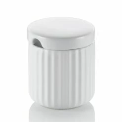 Zuckerdose Maila aus Keramik, weiß, matt. 7 cm Ø, Höhe 8 cm.