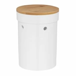 Zwiebeltopf Salena aus Keramik mit Deckel aus Bambus. Ø 15 cm, Höhe 20,5 cm.